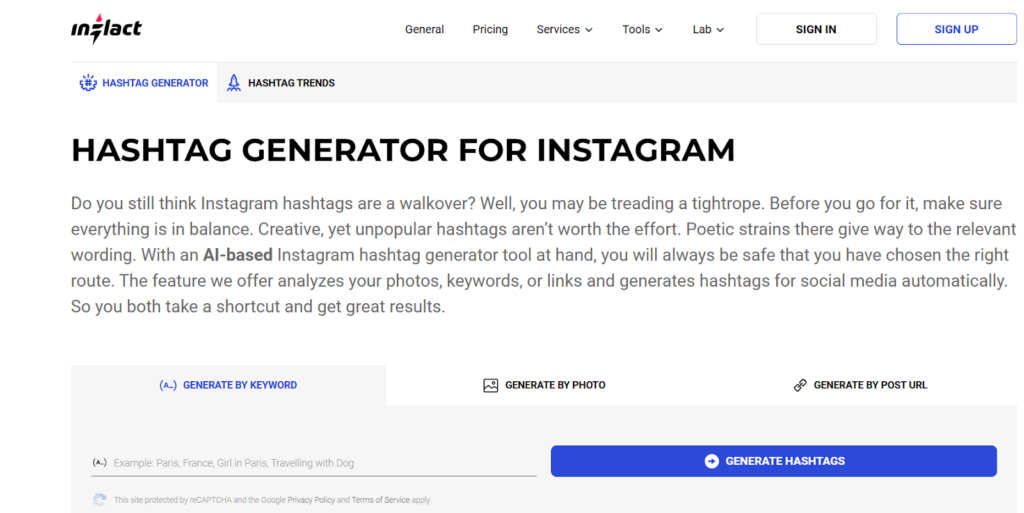 Inflact’s Hashtag Generator is an AI-powered tool designed to boost Instagram engagement by providing trending and highly relevant keywords. By analyzing your input—whether it’s a photo, specific keywords, or links—the tool generates suggestions that enhance visibility and attract the right audience. Here’s how it works: