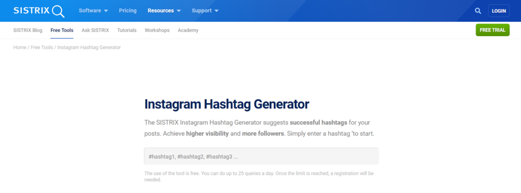 The SISTRIX Instagram Hashtag Generator is crafted to enhance Instagram visibility by recommending high-performing keywords. By entering a starting hashtag, users receive a curated list tailored to their content, improving discoverability and fostering follower growth. Since Instagram lacks a traditional search function, these recommendations help users effectively connect with their target audience.