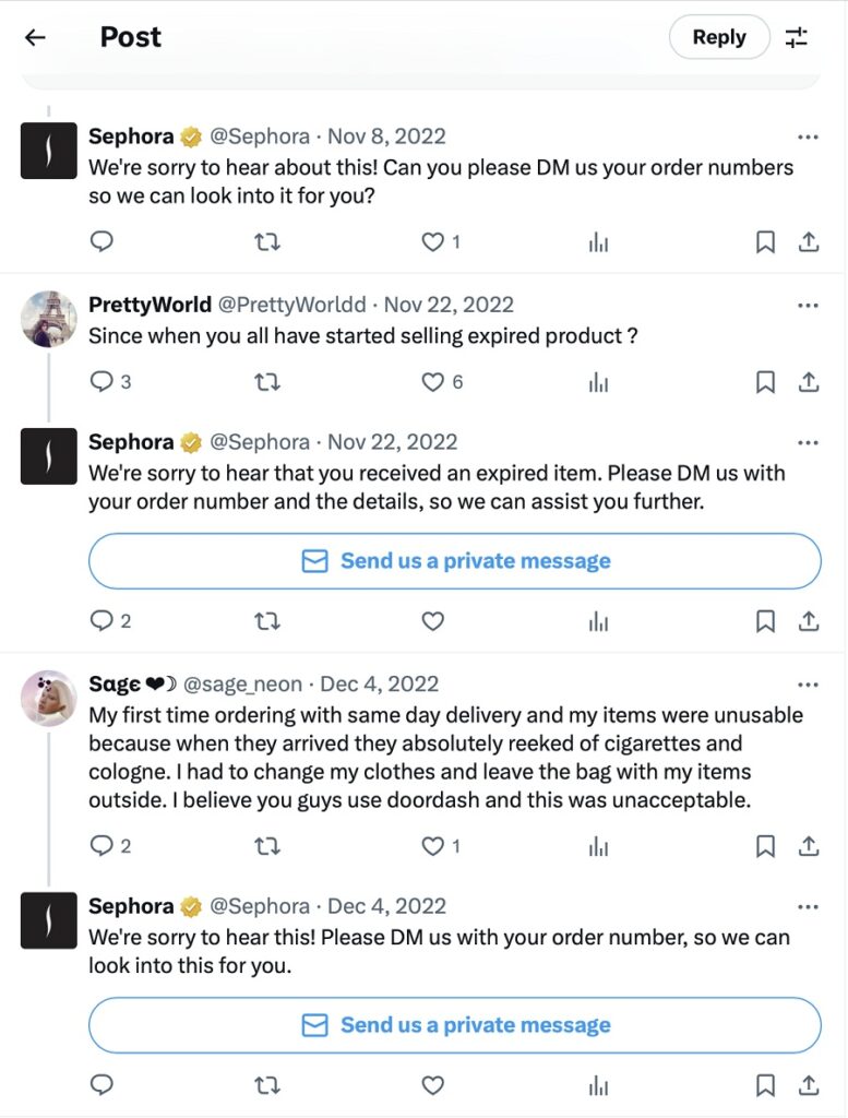 Take Sephora’s account as an example—you can totally tell when their responses are automated. Do you like that?