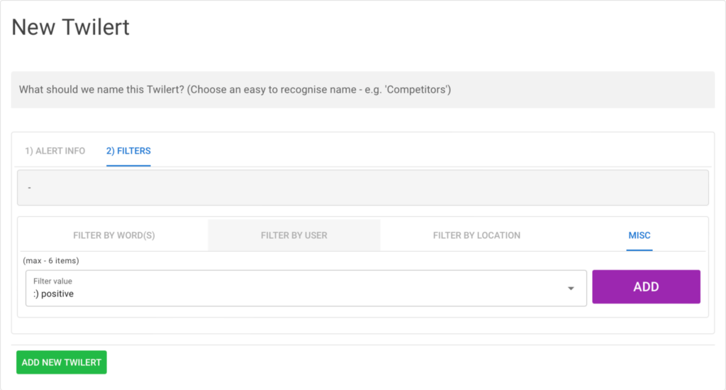 First of all, there’s deep filtering. You can set up tracking based on location, language, tweet sentiment, and a bunch of other parameters. This is super useful if you’re operating in international markets or targeting specific audiences.