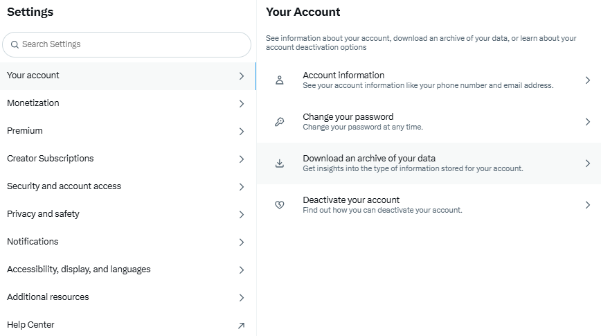 To download your X archive: