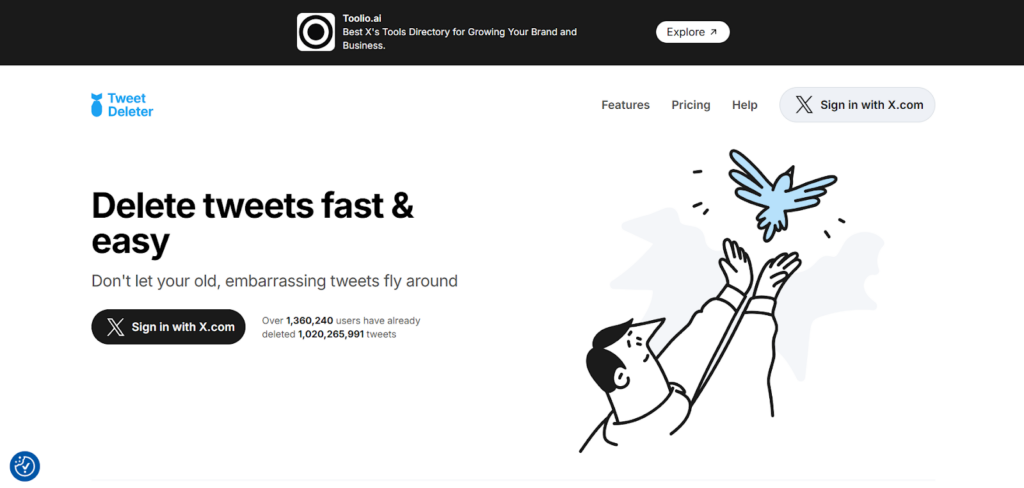 TweetDelete is a popular web-based tool designed to help users efficiently delete their Twitter history, including scheduling future tweet deletions. With TweetDelete, users can bulk delete past tweets by entering a specific date range, allowing the platform to handle the rest. This feature makes it easy to clean up large numbers of posts, giving your X timeline a fresh start.