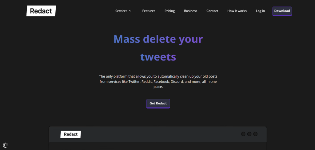 Redact is a downloadable app available for macOS, Windows, and Linux, providing comprehensive deletion services across various platforms, including Twitter.