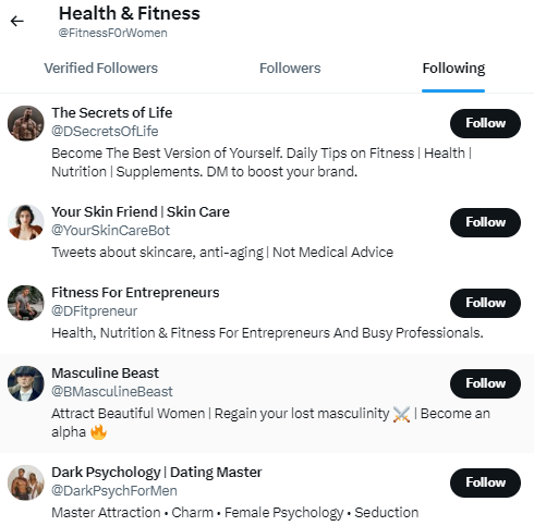 - Click the “Following” tab to see who they follow;