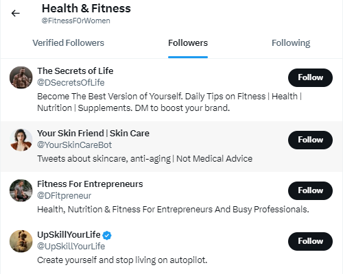 - Click the “Followers” tab to view their followers;