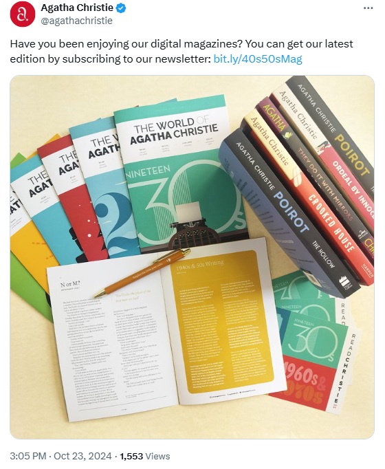 Regularly interacting with followers—by responding to comments, retweeting, or answering DMs—builds a stronger relationship with your audience, helping them feel valued. This connection reinforces their interest in your brand, making them more likely to subscribe to your email list. For example, brands like @agathachristie offer exclusive digital content, such as digital magazines, to encourage sign-ups through clear CTAs.