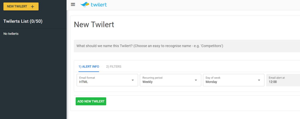 To stay updated on relevant conversations and engage with your audience efficiently, tools like Twilert can be valuable. Twilert enables you to find tweets based on specific criteria, sending you a weekly report with new tweets that meet your selected filters.