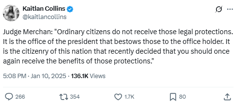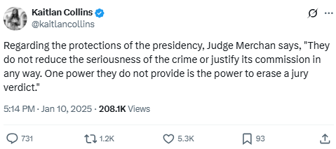 “Regarding the protections of the presidency, Judge Merchan says, ‘They do not reduce the seriousness of the crime or justify its commission in any way. One power they do not provide is the power to erase a jury verdict.’”