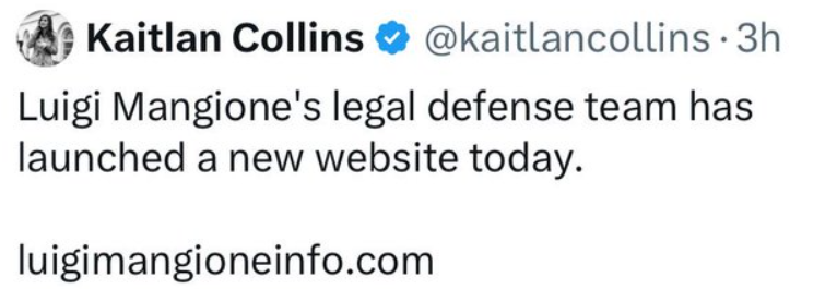 “Luigi Mangione’s legal defense team has launched a new website today. luigimangioneinfo.com”