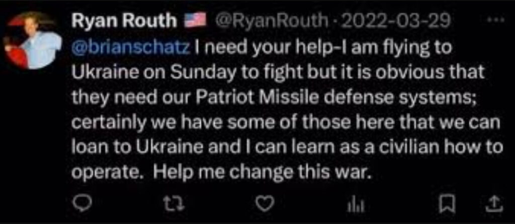 Routh reached out to a U.S. senator asking for missile systems and proposing to operate them himself—despite being a civilian with no clear military training.
