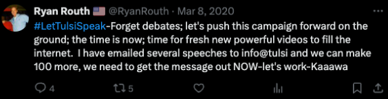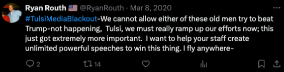 Routh imagined himself as a grassroots digital strategist, claiming he sent speeches to Tulsi’s campaign and calling for internet-wide mobilization.