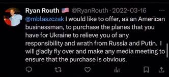 Routh offered to personally buy military aircraft for Ukraine and suggested a press tour to make the deal public.