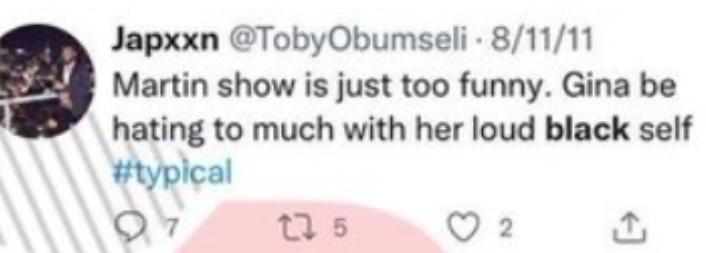 “Martin show is just too funny. Gina be hating to much with her loud black self #typical”