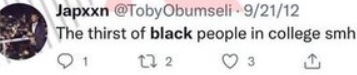 In this tweet, he makes a generalizing remark about Black people in college, using the term “thirst” in a derogatory way. The vague insult adds to the pattern of tweets seen by many as dismissive, stereotypical, and racially biased.