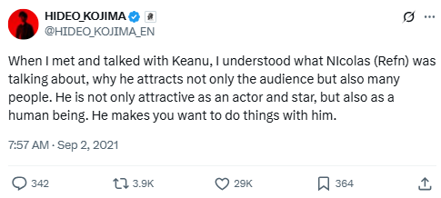 Kojima expresses his respect for Keanu Reeves and points out how he connects with many people. He mentions director Nicolas Winding Refn, referring to Reeves’ role in The Neon Demon (2016), as an example of the actor’s range in less traditional films. This matches Kojima’s own interest in experimental storytelling in games. Fans reacted with memes and comments, linking the post to what is often called the “Keanu Effect,” a term used to explain why Reeves is well-liked due to his behavior and personality, as noted in studies on public perception of celebrities.