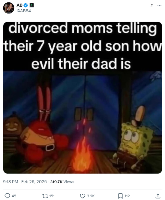 A Spongebob meme used to poke fun at how one-sided family stories can be. Classic meme format with a slightly darker twist.