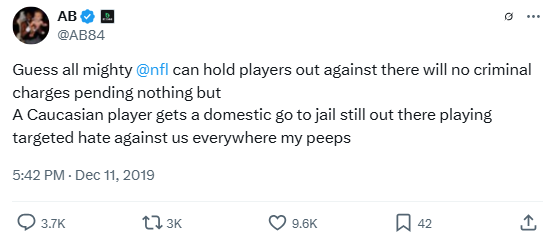 “Guess all mighty @nfl can hold players out against there will no criminal charges pending nothing but