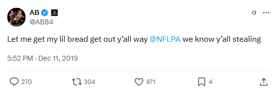 Tweet #3: Calling Out the NFLPA for “Stealing”