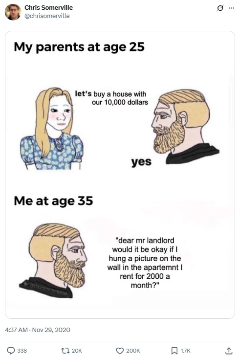 Me at age 35: “Dear Mr. Landlord, would it be okay if I hung a picture on the wall in the apartment I rent for $2000 a month?”