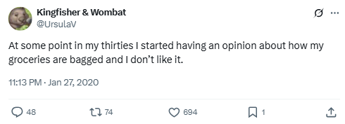 At some point in my thirties I started having an opinion about how my groceries are bagged and I don’t like it.
