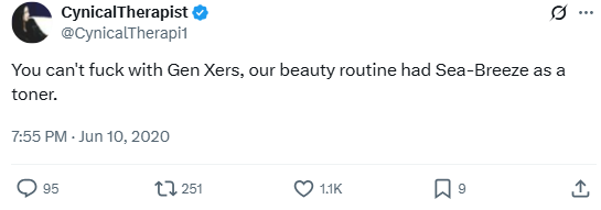 You can’t mess with Gen Xers, our beauty routine had Sea-Breeze as a toner.