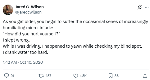 As you get older, you begin to suffer the occasional series of increasingly humiliating micro-injuries.