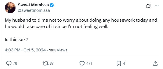 “My husband told me not to worry about doing any housework today and he would take care of it since I’m not feeling well.