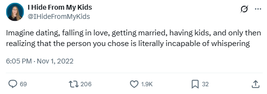 “Imagine dating, falling in love, getting married, having kids, and only then realizing that the person you chose is literally incapable of whispering”