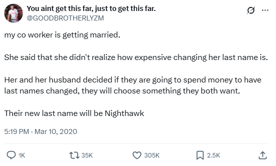Their new last name will be Nighthawk”
