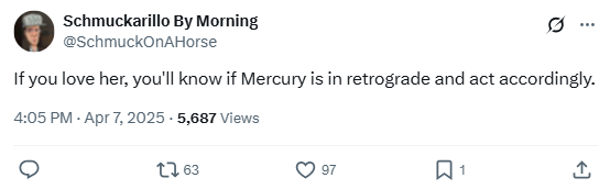 “If you love her, you’ll know if Mercury is in retrograde and act accordingly.”