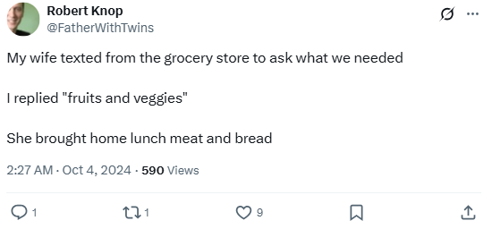 Communication is key—unless groceries are involved. Then it’s just vibes and deli meat.