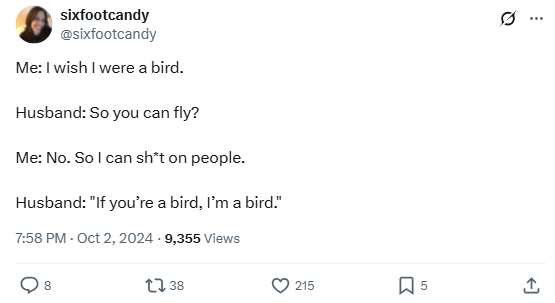 Husband: “If you’re a bird, I’m a bird.””