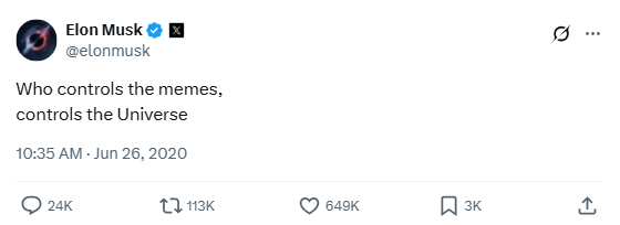 In a world where internet culture shapes opinions and markets, Musk takes memes seriously. This tweet shows he understands how far a viral image can reach.
