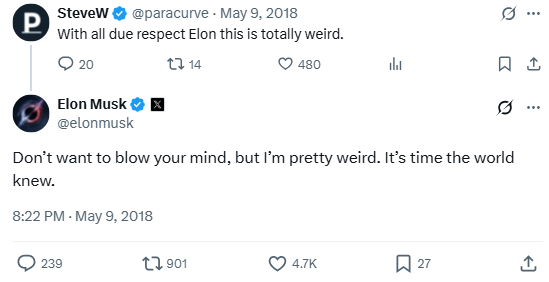 After being called out for weird behavior, Elon doesn’t deny it—he doubles down. A self-aware mic drop from the king of tech eccentricity.