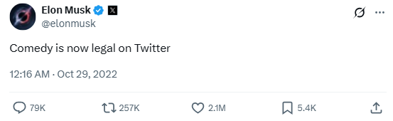 After taking over Twitter, Musk made a pointed joke about free speech and humor under his leadership. It was both a subtle jab and a self-aware nod to how unpredictable the platform might become under his reign.