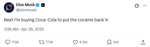 After shaking the internet with the Twitter deal, Musk kept the momentum going by joking about buying Coca-Cola—just to restore its original formula. It’s over-the-top, but totally on-brand.