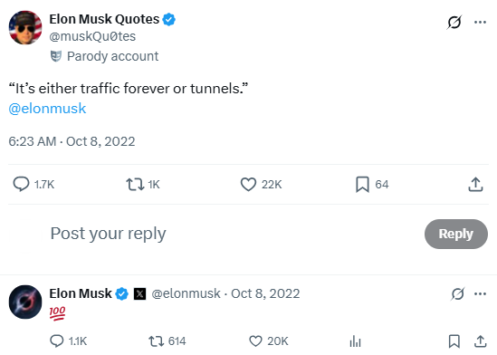 When Elon agrees with Elon, he makes it official with a 💯 emoji. It’s the digital equivalent of nodding at yourself in the mirror—and apparently, he does it often.