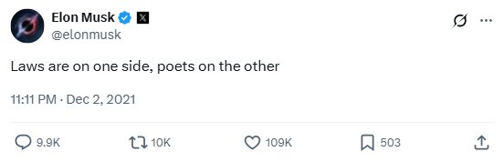 This cryptic tweet feels like something pulled from a midnight philosophy session. Whether it’s a comment on society or just abstract musing, Musk positions himself somewhere between logic and lyricism.