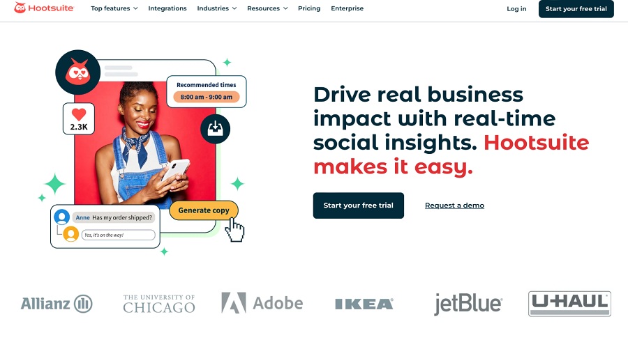 Now, let’s say you’re the marketing director of a large company actively engaging on multiple social media platforms. Your responsibilities go beyond posting content. You also need to analyze its performance, measure campaign effectiveness, and integrate social media with other marketing channels. The stakes (and budgets) are much higher. Here, platforms like Hootsuite or Sprout Social shine. They offer advanced analytics and the ability to integrate with various other services and CRM systems. This allows you to run a more complex, large-scale marketing strategy.