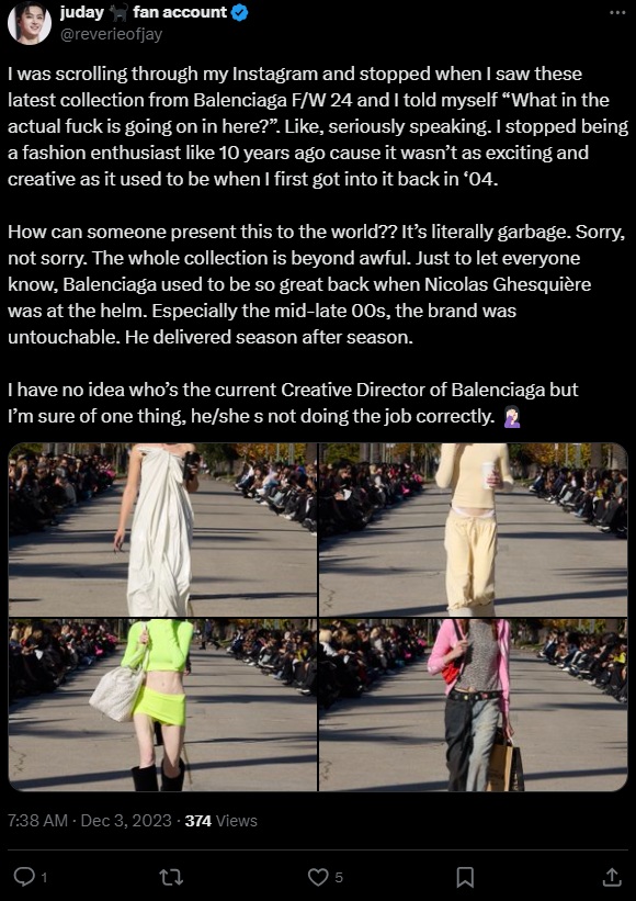 A relevant example might be tracking feedback on a recent collection, such as negative reactions to Balenciaga’s F/W 24 collection, where users expressed strong opinions about the brand’s creative direction.