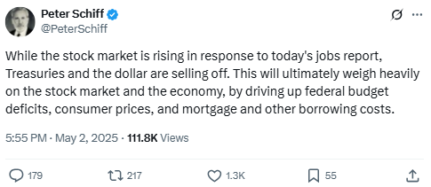 Source: https://x.com/PeterSchiff/status/1919220809240875457