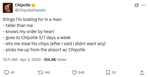 Source: https://x.com/ChipotleTweets/status/1909730407899406423