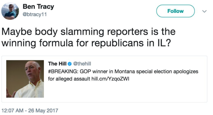 “Maybe body slamming reporters is the winning formula for republicans in IL?”