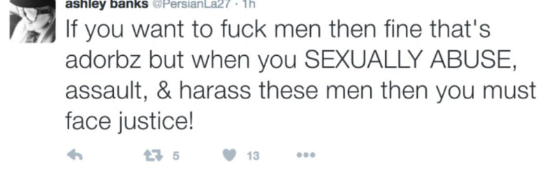 If you want to f*ck men then fine that’s adorbz but when you SEXUALLY ABUSE, assault, & harass these men then you must face justice!
