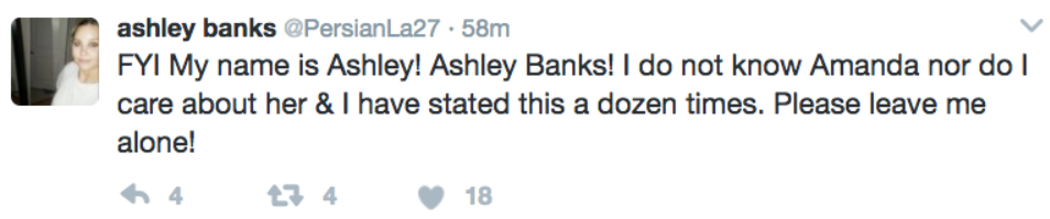 FYI My name is Ashley! Ashley Banks! I do not know Amanda nor do I care about her & I have stated this a dozen times. Please leave me alone!