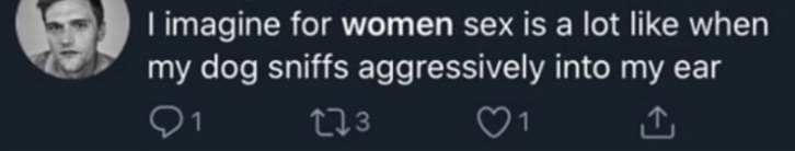 “I imagine for women sex is a lot like when my dog sniffs aggressively into my ear”
