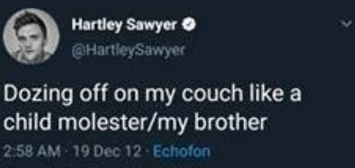 Sawyer deleted his Twitter account after the tweets circulated widely online. Among the resurfaced content were inappropriate comments about sexual violence and offensive jokes, such as one tweet that read: “The only thing keeping me from doing mildly racist tweets is the knowledge that Al Sharpton would never stop complaining about me.” Another from 2014 stated, “Enjoyed a secret boob viewing at an audition today,” while others made crude references to rape and women.