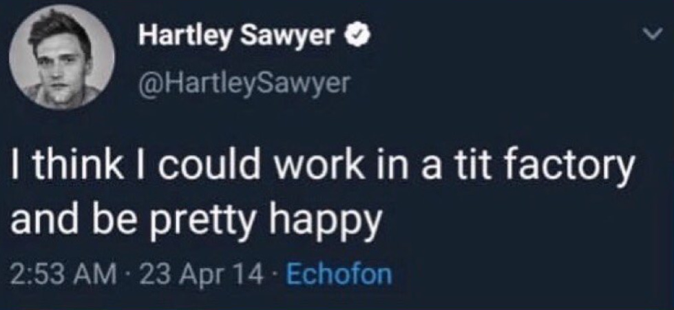 “I think I could work in a tit factory and be pretty happy”