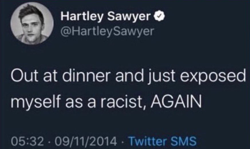 “Out at dinner and just exposed myself as a racist, AGAIN”
