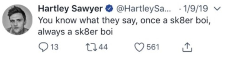 “You know what they say, once a sk8er boi, always a sk8er boi”